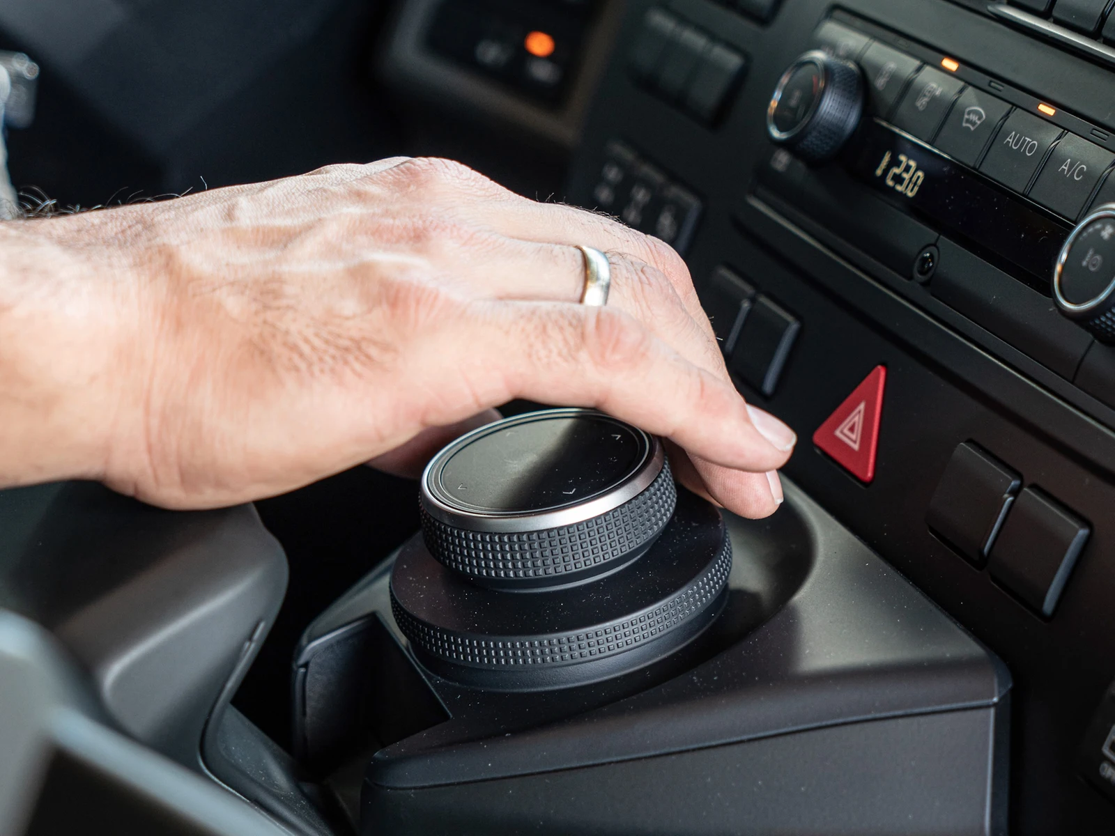 Керування інформаційно-розважальною системою для навігації та зв’язку зручно здійснюється за допомогою системи керування MAN SmartSelect: Поворотно-натискна кнопка з сенсорною панеллю та опорою для долоні забезпечують впевнене керування — навіть під час руху бездоріжжям.