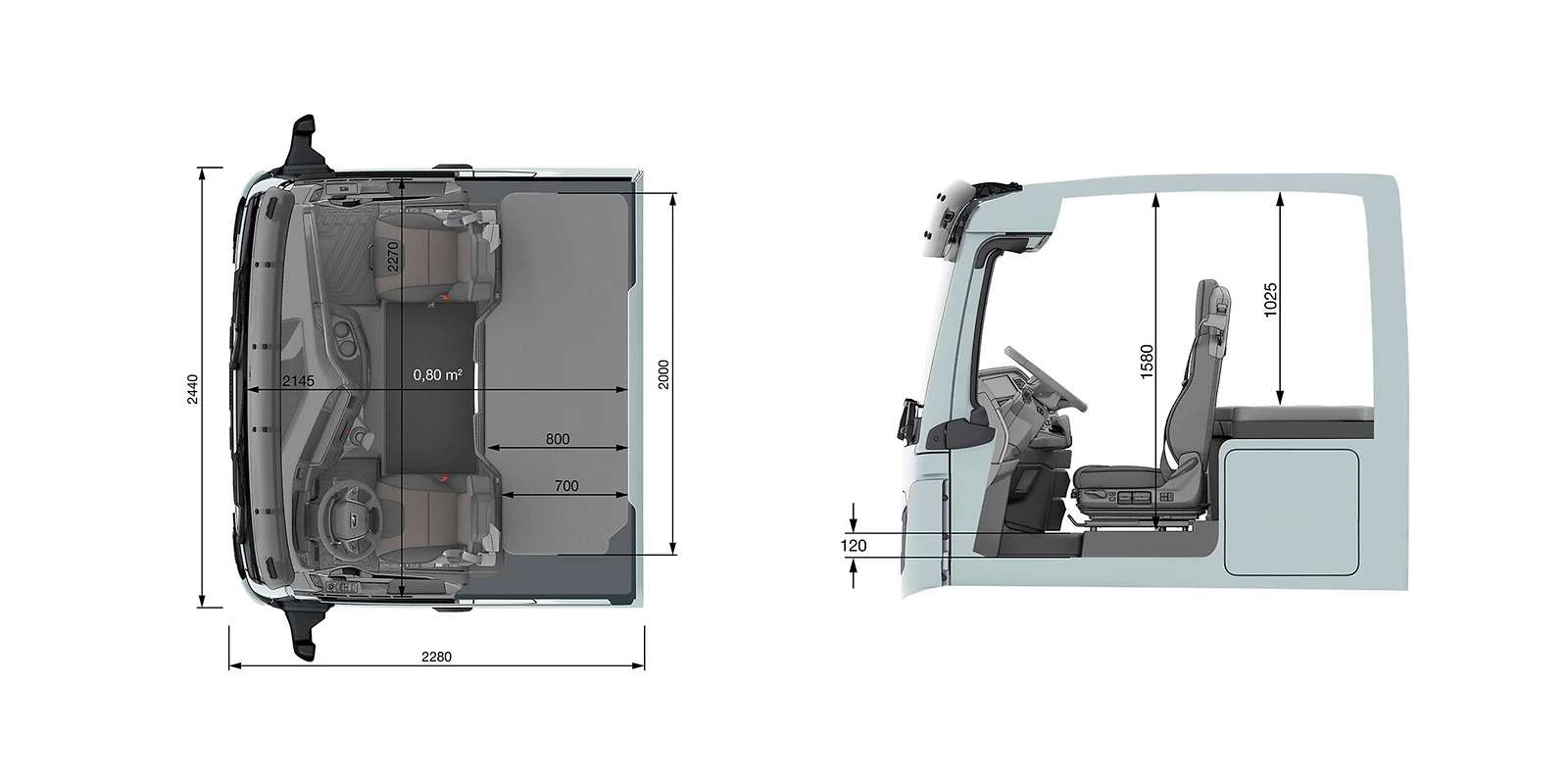 Завдяки невеликій висоті, кабіна GN відмінно підходить для надбудов — без шкоди для комфорту під час роботи й відпочинку.