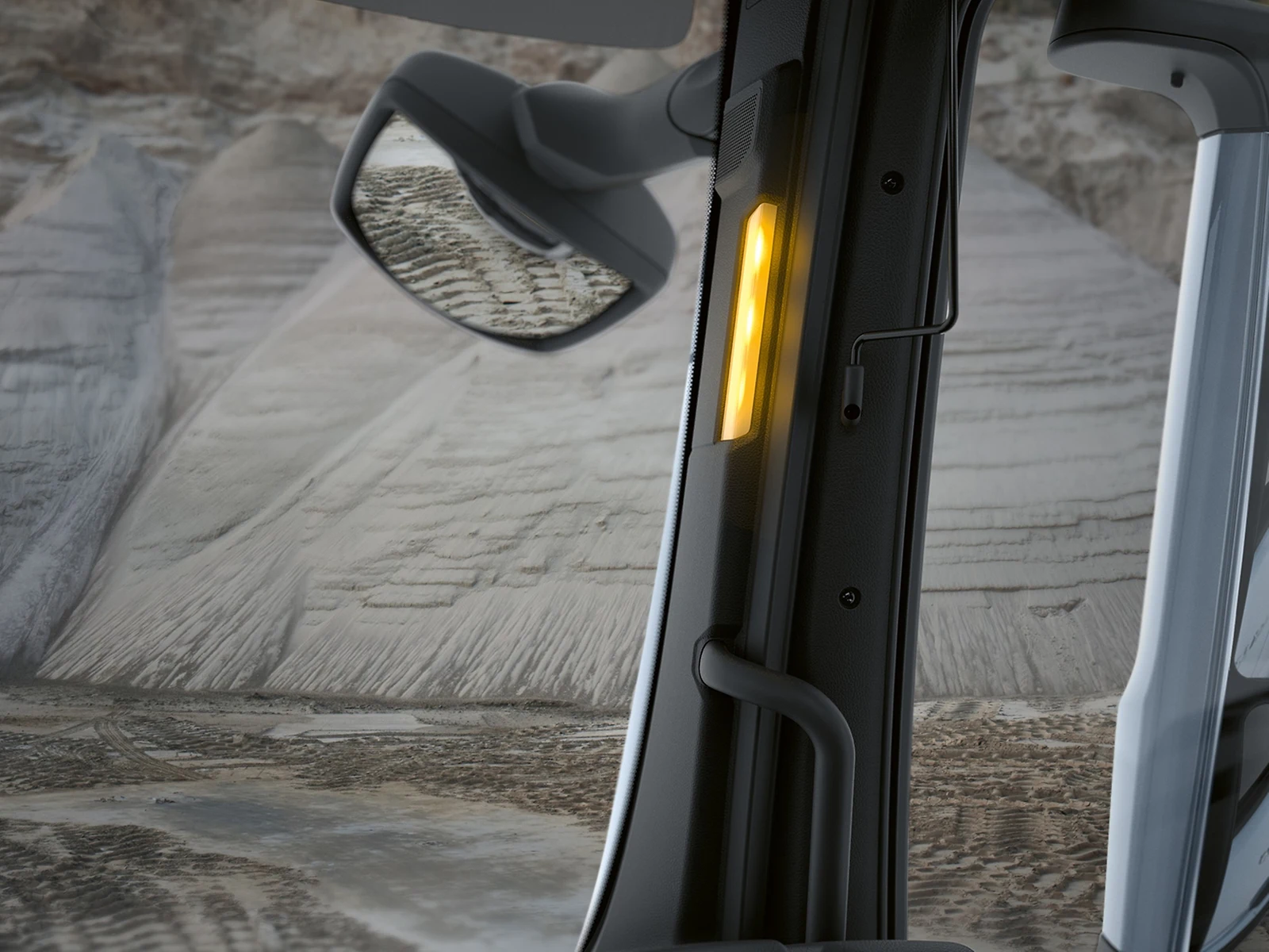 Якщо в зоні попередження ідентифіковано об’єкт і ввімкнено вказівник повороту чи відбувається сильний удар радара, умикається ступінь 1: Світиться один із трьох світлодіодів на передній осі.