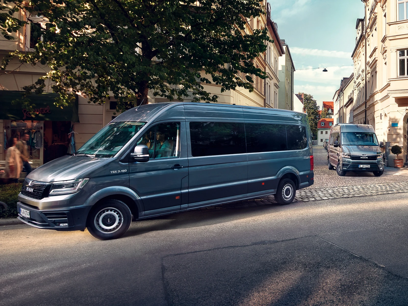 Малий автобус, великі можливості: Комбі-фургон MAN TGE 1) охоплює весь спектр пасажирських перевезень. Він забезпечує можливість перевезення людей з обмеженими фізичними здібностями в інвалідних візках і може використовуватися як автобус для трансферу в готелях, для VIP-пасажирів або як шкільний автобус.